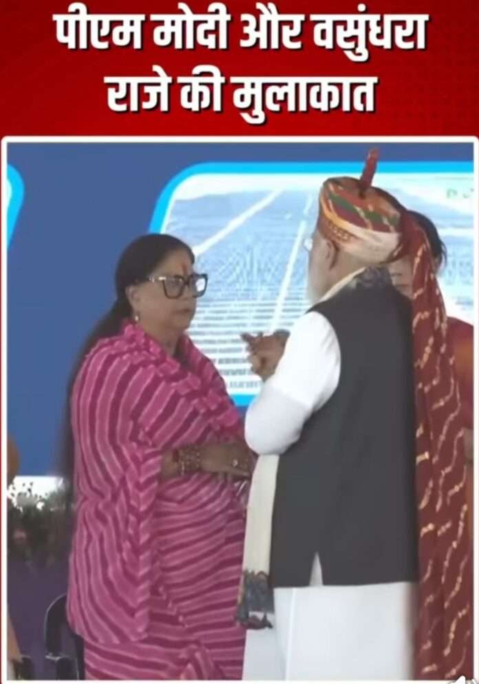 राजनीतिक विश्लेषकों का कहना है कि विधानसभा चुनाव में वसुंधरा राजे की भूमिका महत्वपूर्ण थी इसे नकरा नहीं जा सकता, एक तरह से भाजपा में वह मुख्यमंत्री पद की स्वाभाविक दावेदार भी थी लेकिन जब मुख्यमंत्री बनाने की बारी आई तो उन्हें दरकिनार कर दिया गया, अभी उन्हें कोई सम्मानजनक स्थिति नहीं है, ऐसे में आज उन्होंने अपने तीखे तेवर से प्रधानमंत्री को अवगत करा दिया। जब मोदी जी मंच पर पहुंचे तो राज्यपाल सहित अधिकांश नेता हाथ जोड़कर खड़े थे लेकिन वसुंधरा राजे हाथ बांधे खड़ी रही, मोदी जी उनके सामने हाथ जोड़कर खड़े रहे, राजे ने अपनी बात रखी मोदी ने खड़े रह कर उनसे बातचीत की। इसीलिए सत्ता के गलियारों में वीडियो वायरल हो रहा है और चर्चाओं का दौर भी गर्म हो गया है।