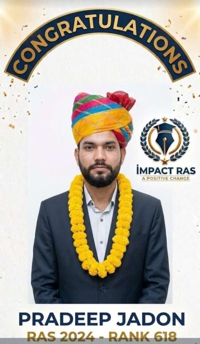 प्रदीप जादौन का आरएएस में चयन, 618वीं रैंक हासिल कर बढ़ाया क्षेत्र का मान