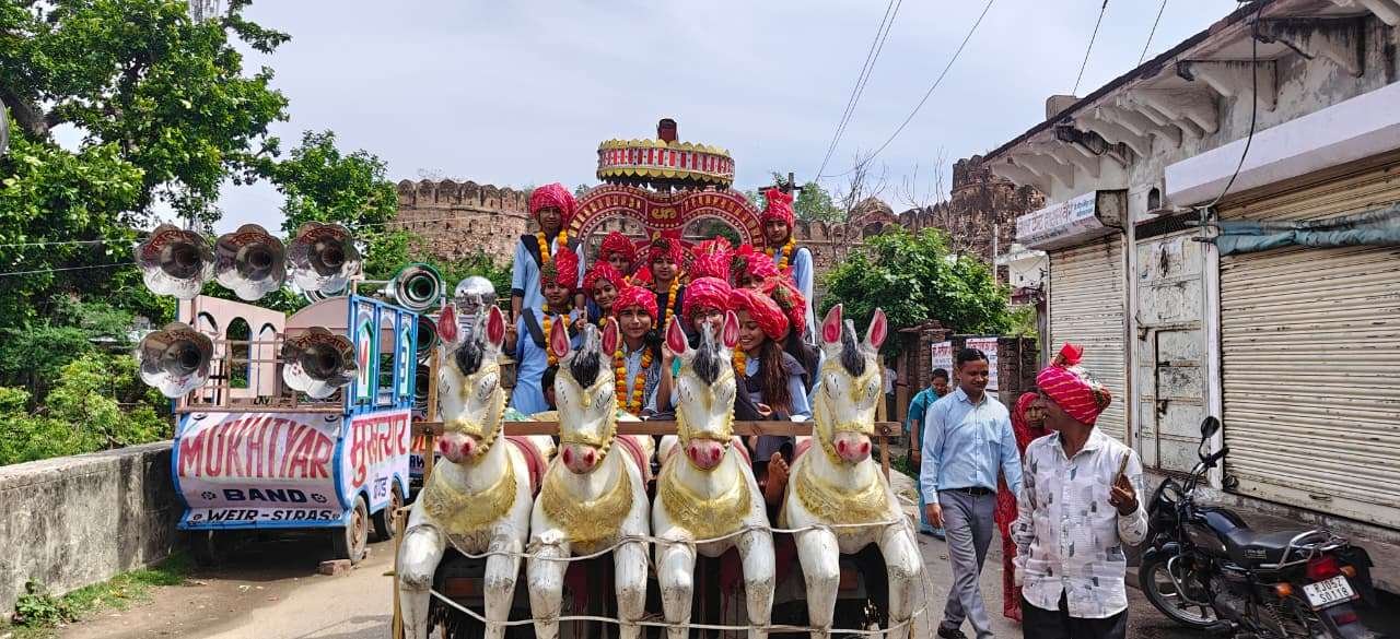रैली को विद्यालय की प्रधानाचार्य प्रियंका अग्रवाल ने हरी झंडी दिखाकर रवाना किया। विद्यालय परिसर से शुरू हुई यह रैली मुख्य बाजार, बाबा मनोहरदासजी मंदिर सहित नगर के प्रमुख मार्गों से होकर गुजरी। इस दौरान छात्राएं बैंड-बाजे और ढोल-नगाड़ों के साथ उत्साहपूर्वक अपनी सफलता का जश्न मनाती नजर आईं। नगरवासियों ने जगह-जगह पुष्प वर्षा कर छात्राओं का स्वागत किया।