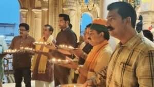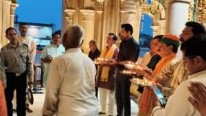 भरतपुर – राजस्थान दिवस के अवसर पर शहर के ऐतिहासिक गंगा माता मंदिर में बुधवार को विशेष महा आरती का आयोजन किया गया। कार्यक्रम में प्रशासनिक अधिकारी, जनप्रतिनिधि और आम नागरिकों ने भाग लेकर देश एवं प्रदेश की खुशहाली की कामना की।