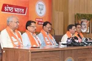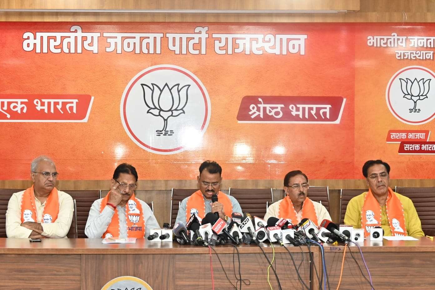 जयपुर – भाजपा के पूर्व प्रदेश अध्यक्ष और वित्त आयोग के अध्यक्ष डॉ. अरुण चतुर्वेदी, उप मुख्यमंत्री डॉ. प्रेमचंद बैरवा और विधायक कुलदीप धनकड़ ने भाजपा सरकार के 20 माह के कार्यकाल की उपलब्धियों और पिछली कांग्रेस सरकार के 5 साल के कार्यों की तुलना करते हुए प्रेसवार्ता की। यह कार्यक्रम भाजपा प्रदेश कार्यालय, जयपुर में आयोजित किया गया।