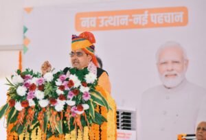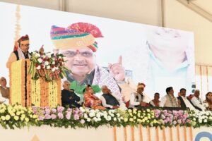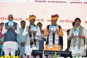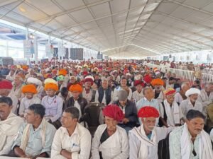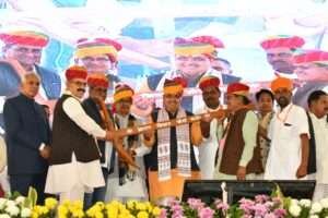 नागौर/जयपुर | राज्य सरकार के दो वर्ष पूरे होने के उपलक्ष्य में नागौर में आयोजित राज्य स्तरीय किसान सम्मेलन में केंद्रीय ग्रामीण विकास, कृषि एवं किसान कल्याण मंत्री शिवराज सिंह चौहान और मुख्यमंत्री भजनलाल शर्मा ने किसानों को संबोधित किया। सम्मेलन का विषय था “नव उत्थान-नया राजस्थान-बढ़ता राजस्थान-हमारा राजस्थान”।