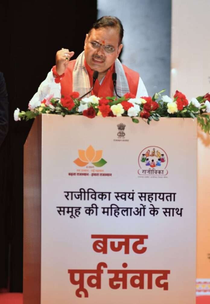 जयपुर। विपक्ष भले ही राजस्थान में बढ़ती बेरोजगारी का रोना रोए लेकिन यदि मुख्यमंत्री भजनलाल शर्मा की माने तो राजस्थान में 13 लाख महिलाएं लखपति दीदी बन चुकी है ,इनमें से मिलेनियर दीदी भी बन रही है। यह सब संभव हुआ है स्वयं सहायता समूह की मदद से महिलाएं बेहतरीन प्रबंधक और उद्यमी है साथ ही महिलाओं ने ऊंची ब्याज तक दर पर कर्ज लेने की मजबूरी से भी मुक्ति पाई है मुख्यमंत्री भजनलाल शर्मा आज जयपुर के बिरला ऑडिटोरियम में राजविका स्वयं सहायता समूह की महिलाओं के साथ बजट से पूर्व संवाद कार्यक्रम को संबोधित कर रहे थे।