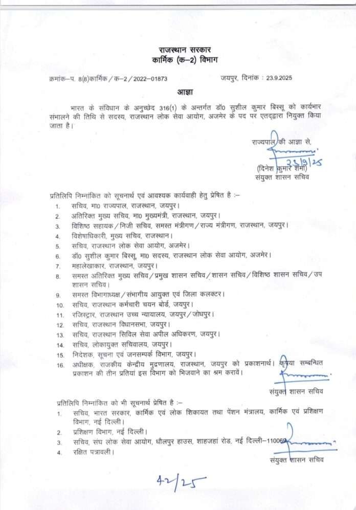 कार्मिक विभाग के आदेश के अनुसार, रिटायर्ड आईपीएस हेमंत प्रियदर्शी, कैंसर विशेषज्ञ डॉ. अशोक कुमार कलवार, और रिटायर्ड प्रोफेसर डॉ. सुशील कुमार बिस्सू को RPSC का सदस्य नियुक्त किया गया है।