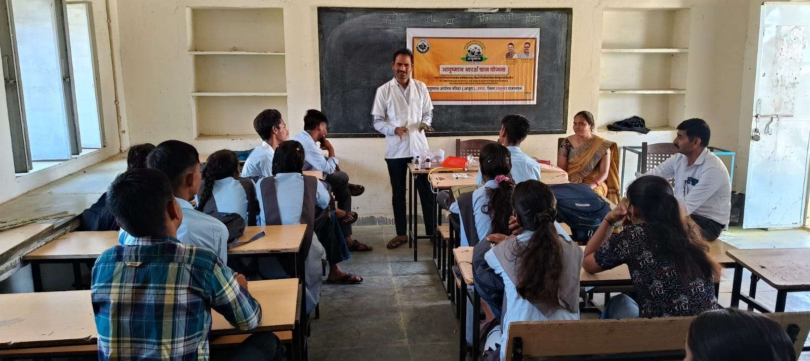सेमारी (बी.एल. जोशी)। सलुम्बर जिले के डगार गांव की राजकीय उच्च माध्यमिक विद्यालय में आयुष्मान आदर्श ग्राम योजना के तहत आरोग्य मित्र और आरोग्य सखी प्रशिक्षण कार्यक्रम का आयोजन किया गया। इस कार्यक्रम का उद्देश्य स्वास्थ्य और कल्याण के क्षेत्र में इन स्वयंसेवकों को सशक्त बनाना था।