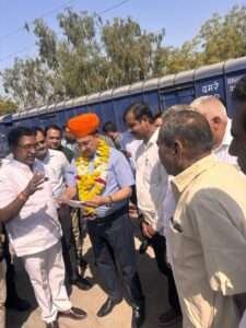 समदड़ी। कस्बे के रेलवे स्टेशन पर आज रेल मंडल प्रबंधक (DRM) के आगमन पर भाजपा कार्यकर्ताओं ने अपनी मांगों को लेकर उन्हें ज्ञापन सौंपा। इस अवसर पर कार्यकर्ताओं ने समाजसेवी गणपत राज मेहता एवं भाजपा समदड़ी मंडल अध्यक्ष देवेंद्र बोराणा के नेतृत्व में DRM का साफा-माला पहनाकर स्वागत किया।