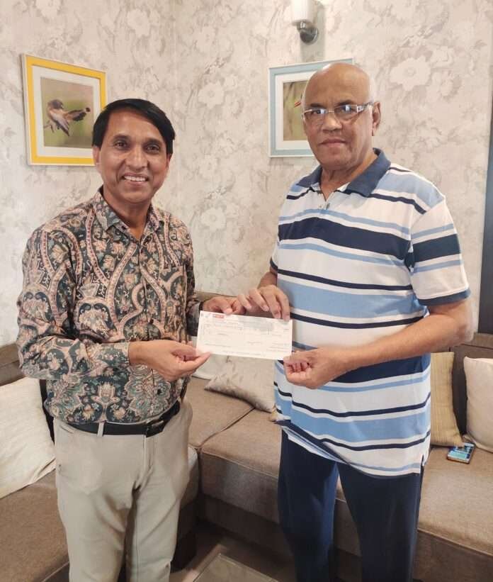जयपुर । आज मानव मिलन संस्थान के संस्थापक अध्यक्ष व समर्पण संस्था के प्रधान मुख्य संरक्षक प्रमोद चौरडिया जैन ने संस्थापक डॉक्टर दौलत राम मालिया को अपने निवास पर मुलाकात के दौरान संस्था के निर्माणाधीन समर्पण आश्रय केयर भवन ( दादा पोता निवास )के लिए ₹30000 का चेक भेंट किया । उल्लेखनीय है कि चौरडिया ने अब तक निर्माणाधीन समर्पण आश्रम केयर होम कुल ₹381000 योगदान दे चुके है ।