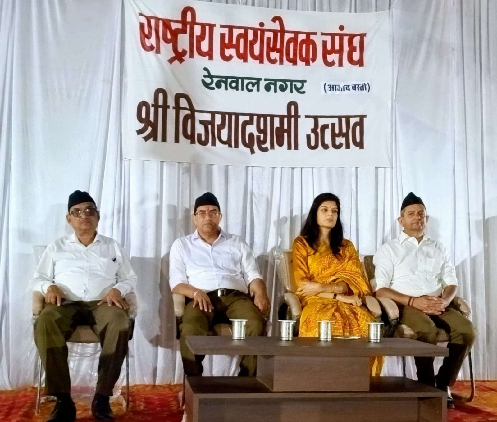 यह जानकारी बुधवार को आज़ाद बस्ती, रेनवाल में आयोजित विजयादशमी उत्सव के दौरान मुख्य वक्ता संजीव शर्मा (सांगानेर विभाग कार्यवाह, आरएसएस) ने दी।