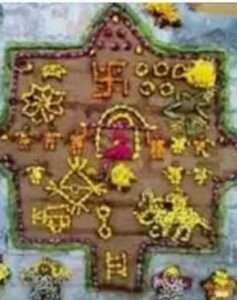 गांवों और कस्बों में लड़कियां घरों के बाहर, दरवाजों और दीवारों पर गाय के गोबर से कलात्मक आकृतियां बनाती हैं। संझा देवी की आकृतियों को हार, चूड़ियां, फूल-पत्तों, रंग-बिरंगे कपड़ों और सिंदूर से सजाया जाता है।