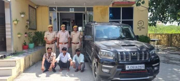 पीसांगन कस्बे में काली स्कॉर्पियो में सायरन बजाकर आमजन में भय पैदा करने वाले तीन आरोपियों को पुलिस ने गिरफ्तार किया है।
