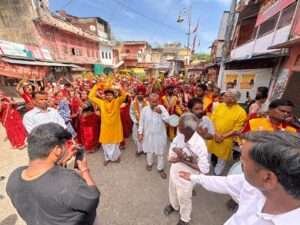 यात्रा में 51 महिलाओं ने सिर पर कलश धारण कर भक्ति भाव से जयकारे लगाए। श्रद्धालु भजनों की धुनों पर नाचते-गाते हुए यात्रा में शामिल हुए, जिससे पूरा वातावरण भक्तिमय हो गया।