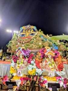 गोवेर्धन पूजा महोत्सव पर कार्यक्रम के मुख्य अतिथि ने श्री गिर्राज गोवर्धन का आशीर्वाद लिया और भगवान् श्री श्री कृष्ण बलराम की महा आरती की । गोवेर्धन पूजा गुप्त वृन्दावन धाम में 21 फीट ऊंचे गोवर्धन पर्वत का पूजन किया गया जिसे भारत की पवित्र नदियों और तीर्थों के जल और गाय के गोबर से निर्मित किया गया । भगवान् श्री श्री कृष्ण बलराम का विशेष श्रृंगार किया गया, आज के उत्सव की विशेष बात ये थी की भक्तों ने स्वयं श्री गिरिराज गोवर्धन को भोग लगाने के लिए 108 प्रकार के भोजन पकवान तैयार किये।
