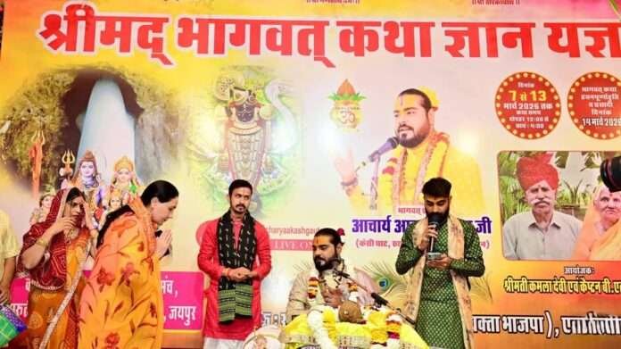 श्रीमद् भागवत कथा का यह आयोजन जयपुर में श्रद्धा, भक्ति और आध्यात्मिक ऊर्जा का केंद्र बन गया है, जहाँ प्रतिदिन हजारों श्रद्धालु उपस्थित होकर कथा का लाभ प्राप्त कर रहे हैं।इस अवसर पर पुर्व पुलिस महानिदेशक श्री बीएल सोनी, डा० बजरंग सोनी स्वर्णकार समाज जयपुर के कैलाश सारडीवाल , राजाबाबु सोनी , साँवरमल नारनोली, भाजपा नेता रश्मि सैनी , सुमैर मौसुण, सुबोध जांगलवा , मनीष तालकटोरा आदि शामिल रहे
