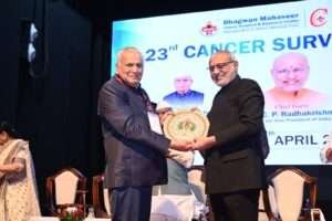 जयपुर। भगवान महावीर कैंसर हॉस्पिटल एवं कैंसर केयर की ओर से 23वां कैंसर सर्वाइवर्स डे शनिवार को महाराणा प्रताप ऑडिटोरियम में संपन्न हुआ। कार्यक्रम के मुख्य अतिथि भारत के उपराष्ट्रपति सी. पी. राधाकृष्णन ने कैंसर सर्वाइवर्स का उत्साहवर्धन करते हुए कहा, “आप सभी सच्चे योद्धा हैं, आपकी मुस्कान आपकी ताकत है। आप अन्य मरीजों और उनके परिवारों के लिए प्रेरणा हैं।” उन्होंने युवाओं को नशे और तंबाकू से दूर रहने का संदेश देते हुए कहा कि स्वस्थ जीवनशैली अपनाना बेहद जरूरी है। साथ ही उन्होंने कैंसर मरीजों को आश्वस्त किया कि “आप अकेले नहीं हैं, हम सभी आपके साथ हैं।” उन्होनें अपने संबोधन में कहा कि जीवनशैली में बदलाव कर कैंसर से बचाव संभव है। उन्होंने तीन महत्वपूर्ण बातों पर जोर देते हुए कहा तंबाकू का सेवन न करें, जंक फूड से दूरी बनाए रखें और शुद्ध पानी का उपयोग करें। उन्होंने कहा कि कैंसर सर्वाइवर्स डे का आयोजन समाज के लिए प्रेरणादायक हैं और यह संदेश देते हैं कि कैंसर का इलाज संभव है।