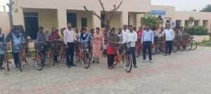 कार्यक्रम में छात्राओं ने उत्साह के साथ भाग लिया और साइकिल प्राप्त कर खुशी जताई।