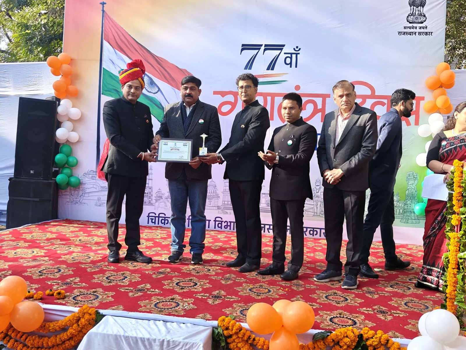 जयपुर* भीलवाड़ा । राजस्थान चिकित्सा शिक्षा विभाग द्वारा चिकित्सा सेवा के क्षेत्र में सहयोगार्थ सक्रिय सामाजिक भूमिका के लिए उत्कृष्ट कार्य हेतु जवाहर फाउंडेशन के संस्थापक अध्यक्ष रिजु झुनझुनवाला को किया सम्मानित . राजस्थान सरकार की चिकित्सा शिक्षा प्रकोष्ठ विभाग के *राज्य स्तर सम्मान समारोह* में अजमेर स्थित जवाहर फाउंडेशन द्वारा निर्मित *स्वाभिमान भोज कार्यक्रम ( मात्र एक रुपए में भोजन)* उपलब्ध कराने के लिए जवाहर फाउंडेशन के संस्थापक अध्यक्ष रिजु झुनझुनवाला को राजस्थान मे राज्य स्तर पर चिकित्सा विभाग द्वारा प्रदेश के चयनित गणमान्य लोगों में सम्मानित किया गया .