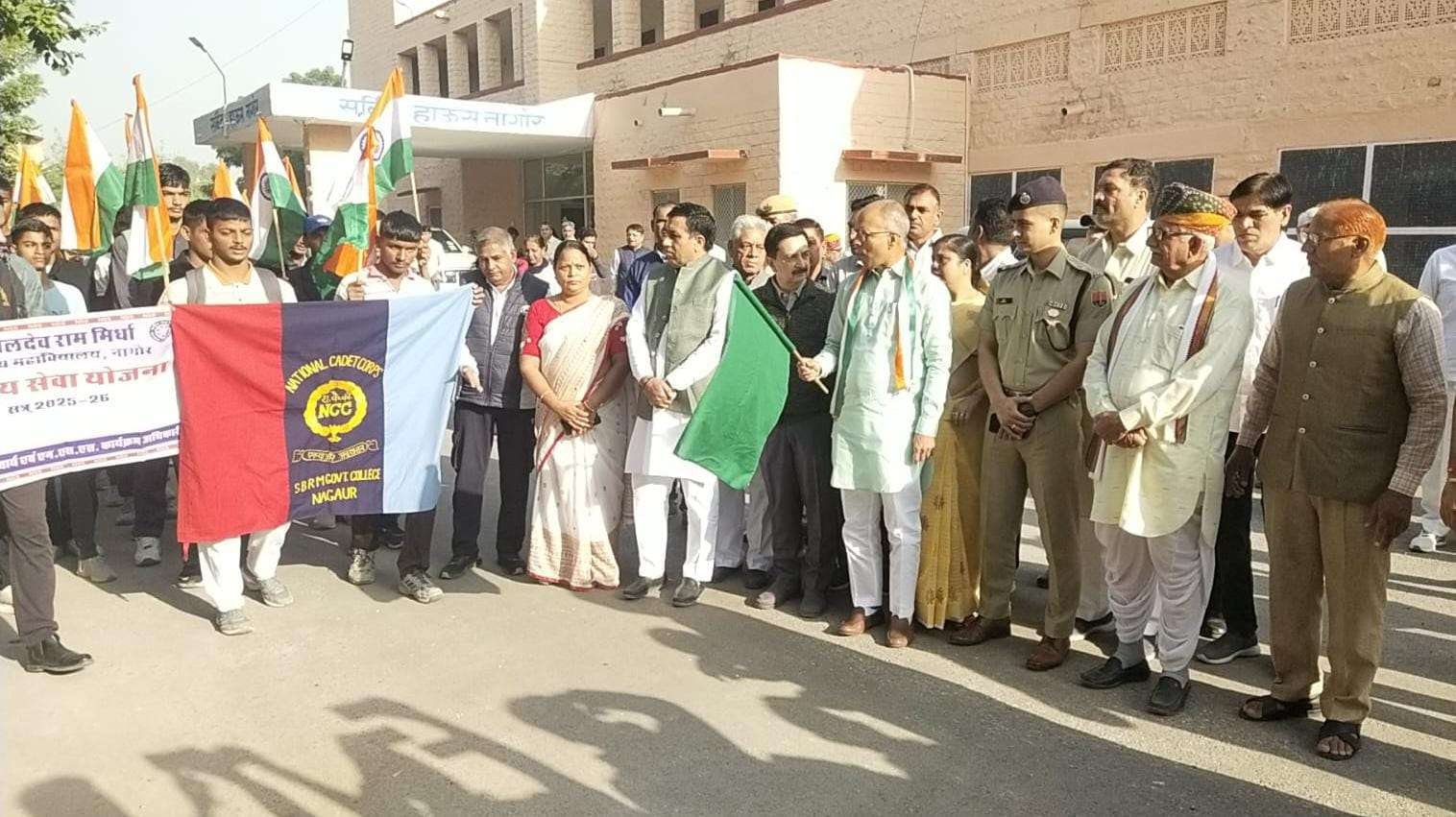 इसके बाद मंत्री चौधरी ने हरी झंडी दिखाकर प्रभात फेरी को रवाना किया। विद्यार्थियों ने “भारत माता की जय” और “वन्दे मातरम्” के जयघोष के साथ नकाश गेट तक प्रभात फेरी निकाली।
