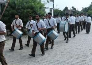संचालन के दौरान स्वयंसेवकों ने पूर्ण गणवेश और घोष वादन के साथ मार्च किया। खंड घोष प्रमुख दिमांशु जांगिड़ ने घोष वादन का नेतृत्व किया। मार्ग में विभिन्न संगठनों ने पुष्प वर्षा कर स्वागत किया, जबकि युवाओं ने “वंदे मातरम” और “भारत माता की जय” के जय घोष किए।
