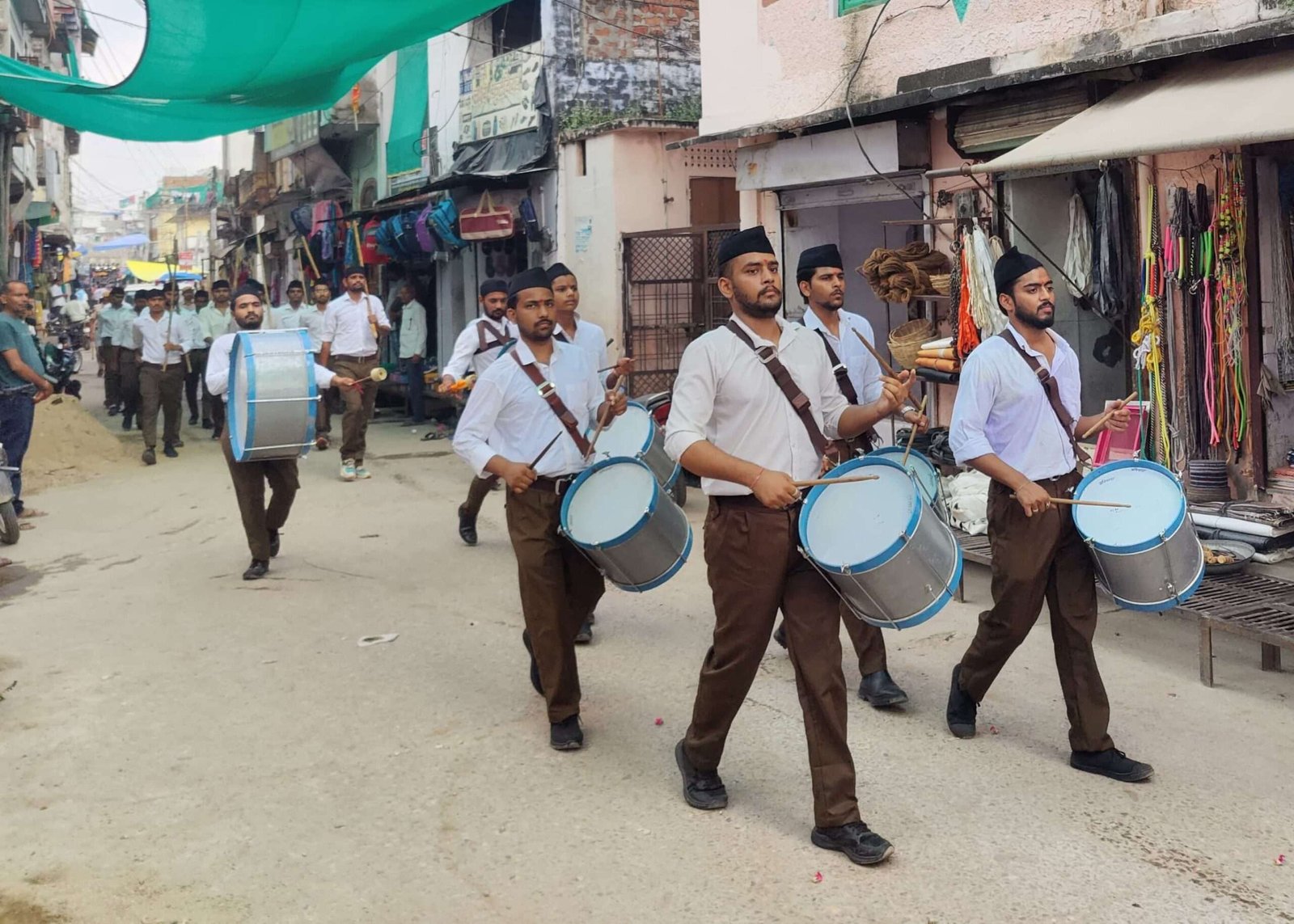 संचालन के दौरान स्वयंसेवकों ने पूर्ण गणवेश और घोष वादन के साथ मार्च किया। खंड घोष प्रमुख दिमांशु जांगिड़ ने घोष वादन का नेतृत्व किया। मार्ग में विभिन्न संगठनों ने पुष्प वर्षा कर स्वागत किया, जबकि युवाओं ने “वंदे मातरम” और “भारत माता की जय” के जय घोष किए।