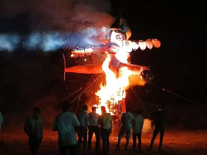 सेमारी में धूमधाम से मनाया गया दशहरा पर्व, 35 फुट ऊंचे रावण का दहन
